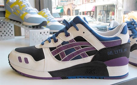 I would say 90% of my sneakers is Nike. Nike dominates my collection. But... I can respect that there are other brands out there that put out stuff I could see myself wearing. Asics has some hot stuff. The Gel Lytes were hot in the 80s. Asics makes good use of purple, all the time. Here we go, the Asics Gel Lyte III summer release has dropped at Footlockers Worldwide.